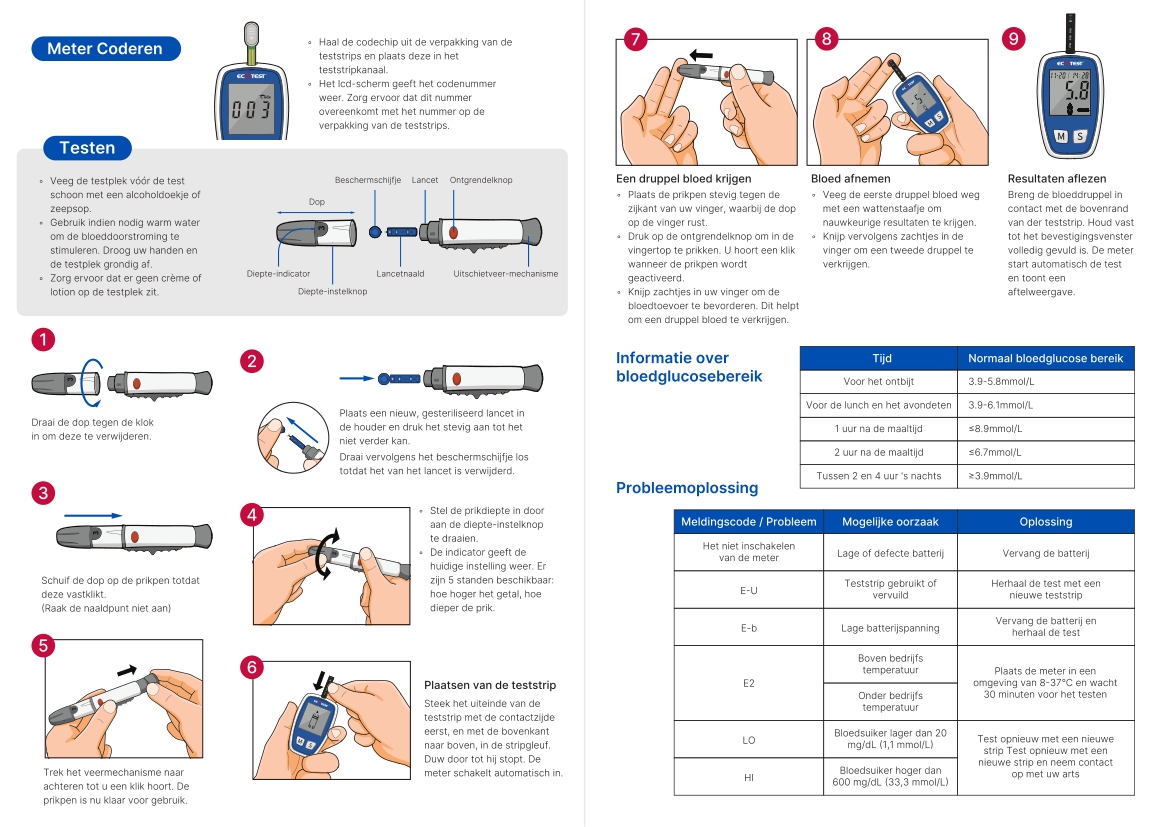 Let op: Alleen te gebruiken met compatible bloedglucosemeters.