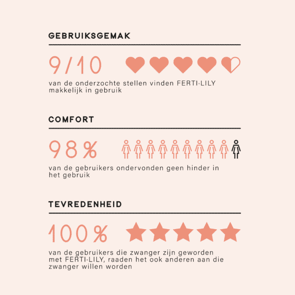 De FERTI·LILY is een medisch hulpmiddel dat speciaal is ontwikkeld om de kans op zwangerschap te vergroten tijdens de natuurlijke cyclus. Het is klinisch onderzocht, veilig in gebruik en bevat geen hormonen. Dit maakt het een uitstekende eerste stap voor vrouwen die hun vruchtbaarheid willen ondersteunen, zonder medische ingrepen of bijwerkingen.